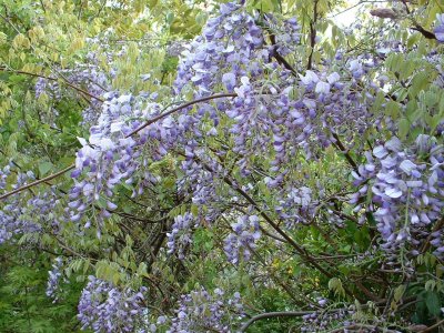 藤の花 薄紫色が日の光を受けるととても綺麗です。 藤棚で観光用に作られているのではなくて、自然に自生しています。目の前に手を伸ばせば触れる所に、しかも自宅の傍に。 4月21日 記 |