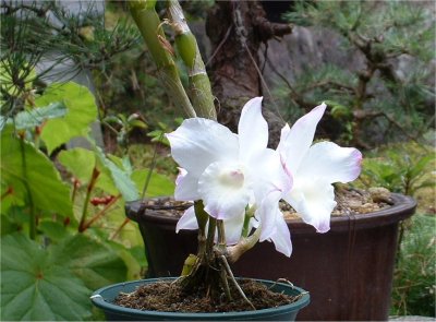 デンドロビウム 真っ白い花びらの先にほんのちょっとだけ淡いピンクがある。 清楚な花、何も書かれていない白いキャンバスのようだ。 いつもこんな風でありたいとも思う。 7月 2日 記 |