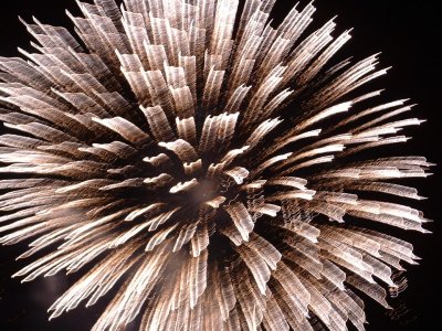 綺麗に撮れているのでもうひとつ。 豊島園や荒川の花火を良く見ていました。 大輪の花火を真下で見ているときに打ち上げた高度が足りずに火の粉が頭から降り注いだ事がありましたね。 地響きのするような低い炸裂音が気持ち良い。 |