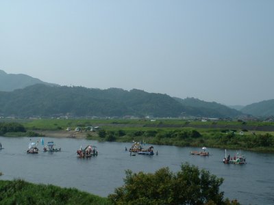 いかだ流し大会 今年は7月27日(日)に行われます。5キロ程度下流まで3時間ぐらいで下っていきます。私は会のお世話をしなければならないので、いかだに乗させてもらえません。以前に一度いかだに乗る機会がありましたが、その時は瀬に突っかけてひっくり返ってしまいました。いかだの出廷募集も行っています。 6月20日 記 |