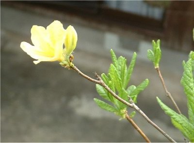 黄色のツツジ 植木屋さんにこのツツジの木の事を言う前にバッサリと剪定されてしまい、私の大好きな黄色のツツジは今年新芽が伸びて一輪のみ咲きました。黄色の花びらは他に比べて薄くてか弱いそうです。また さし芽をしても着きにくくあまり見かけません。近所のさつきの大好きなおじいさんに相談したら来年新芽がでたら挿し木の方法を教えてくれるそうだ。南向きの我家では もうツツジの花は終わってしまいました。 5月11日 記 |