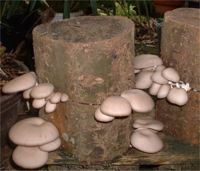 ひらたけ(シメジ) Yさんからもらったほだ木、「今年はだめみたいだねー」とYさんと話していたら、にょきにょきと出てきました。灰色のベルベットのような綺麗な笠をしています。見ているだけでも楽しいけど、これで 鯛と豆腐のお汁にしたらまた格別ですね。 椎茸の方は今年はだめみたいです。 11月 2日 記 |