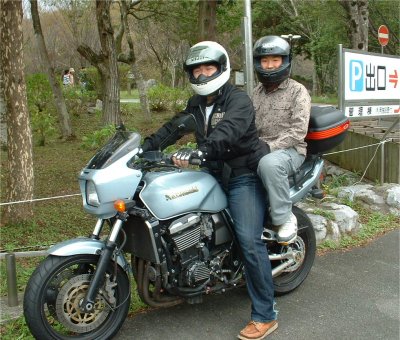 初乗り キノコ狩りに行ってYさんのバイクに乗っけてもらったひふみ。 大型バイクなのに二人が大きい(横方向に?)から小さく見える。Yさんは体型や話し方がりんに似ているから遊んでもらって御機嫌なひふみでした。またバイクに乗りたいなーと思うけど、田舎は雨のお天気が多いし、実用的じゃないからなー。今度乗るとしたらアメリカンスタイルの古い改造車かな。ひふみがバイクに乗る方がはやいかもしれないね。 10月7日 記 |