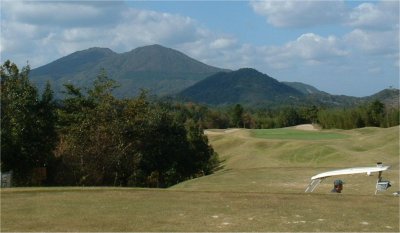 ゴルフコース チャリテイ−の為に使ったショートホール、177ヤード、3ショットの設計。グリーンの奥は2段になって手前に傾斜。左は深い谷底、右は斜面。タイガーウッズが来日して試合してるから笑っちゃうくらい皆力が入ってる。カートのおじさん邪魔だなー。左奥の山は須佐町の高山(こうやま)その向こう側にはホルンフェルスがある。 11月21日 記 |