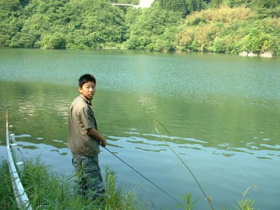 御部(おんべ)ダム 5月23日 ブラックバスの釣りをしたいと言うので、三隅町の御部ダムに行ってみました。うぐいすがすぐ近くで鳴きます。 水面まで降りていく道がありましたが、川底まで降りていく道のようです?ガードレールがずーと水の中に伸びています。水の中を潜って行ける車があったら....。釣果はゼーロ。ダムの上流に整備された公園があってキャンプなど出来るみたいです。 |