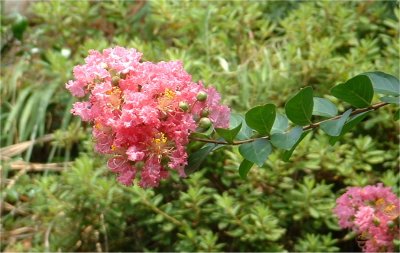 さるすべり (百日紅) 今あちこちの庭先に咲いているね。このさるすべりは私の生まれた頃から裏庭に咲いている。ちっちゃい頃には、この木にサルが登ったらほんとに滑って落ちるかな?なんて思っていたよ。くちゃくちゃとした花だから少し離れた所から眺めると綺麗だね。 7月 27日 記 |