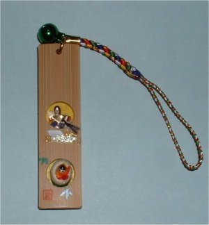 わらべかぐや (KA-2) 22X40X3ミリの竹辺に16ミリの円を刳り中に和紙でわらべかぐやを作りました。 円の中はお月様です。 |