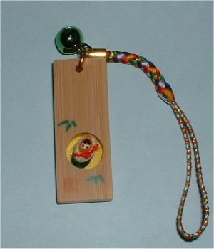 赤ちゃんかぐや (KA-1) 14X38X4.5ミリの竹辺に 10ミリの円を刳り、その中に女竹を入れて中に和紙などで赤ちゃんを作りました。 円の中はお月様です。 |