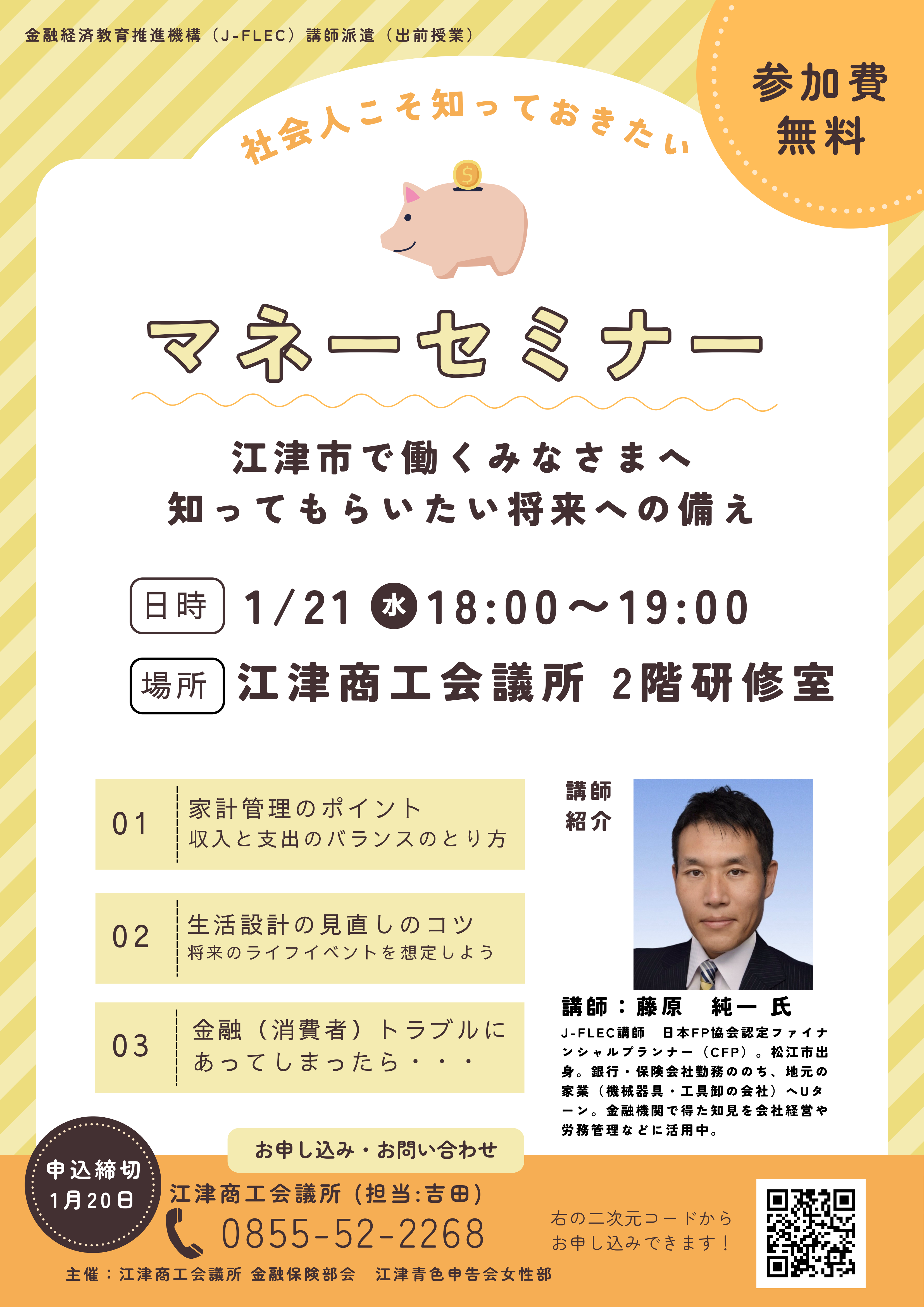 - 江津市で働くみなさまへ知ってもらいたい将来への備えをファイナンシャルプランナーがお話しします。