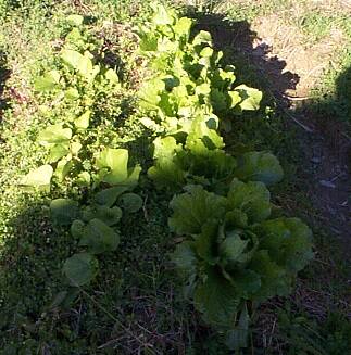 それから、これは右が白菜で左がゴボウです。この両者はともかく、たくさんの雑草が生えっぱなしになっている様子が分かると思います。そして、白菜の葉っぱを良く見ると虫に食べられた後があるのが分かります。
