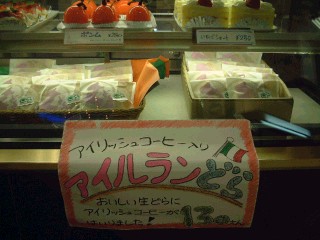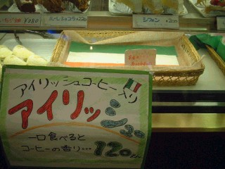 ![]() 【アイルランどら】 アイリッシュコーヒーを入れたどら焼き。 「アイリッシュー」とともに坂根屋で売っている。 |