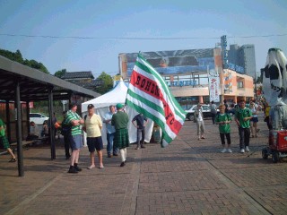 ![]() 【サポーター】 大きな旗を持ったアイルランドのサポーターさん。 ドイツのサポーターに比べて圧倒的に数が多い。 |