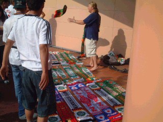 ![]() 【マフラー】 駅前でマフラーを売る外人さん。 マフラーのほかにもTシャツやユニフォーム、 ピンバッジやらいろいろと売っていた。 |