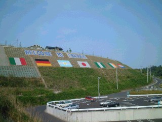 ![]() 【WELCOME TO IBARAKI】 鹿島神宮駅の裏手にあった。 日の丸の両側には、 鹿嶋で試合をするチームの国旗がある。 |