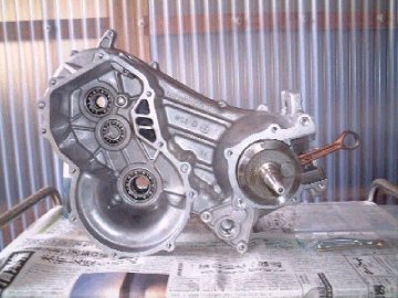 ![]() ↑クランクシャフトの圧入が終わったところ |