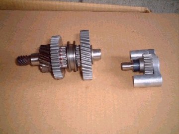 ![]() ↑カウンターシャフト(左)とリバースアイドラギア(右) |