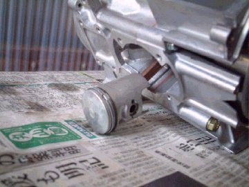 | 2日目最初の作業はピストン・シリンダー編。 ピストンの組み立て、シリンダーとプラグの組み付けである。 ピストンの組み立てでは、ピストンピンクリップをピストンにはめ込むのが 少し難しい作業だったが、他は順調に進行した。 しかし、後でわかったのだが、シリンダーの組みつけ方を間違っていて、 それに気づくまで間違ったつけ方のままで作業は進行していくのである。 どう違っていたのかは後の方の写真と比べてもらえばわかるだろう。 ということで、ピストン・シリンダー編はこれで終わりである。 |