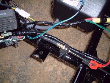 ![]() ↑左右に配してフレームに留められたウインカーハーネス。 この写真ではわかりにくい |