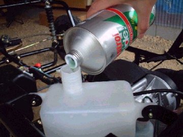 ![]() ↑エンジンオイルを注入しているところ。 こぼさないように注意しながら左手でカメラを持って写真を撮った |