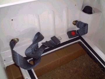 ![]() ↑ボディ内側に取り付けたシートベルト。 取り付け部分に不安が残る |