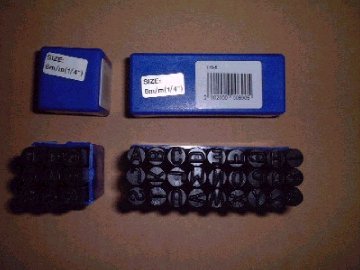 ![]() ↑通信販売で買った刻印。 左が数字右が英字 |