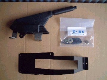 ![]() ↑パーキングブレーキレバーCOMP(上)と パーキングブレーキカバー(説明書の写真にはない) |