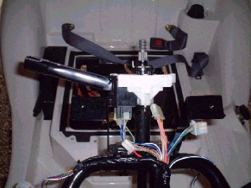 ![]() ↑コンビネーションスイッチを前から見たところ カプラーが接続されているのがわかる |