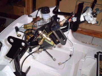 ![]() ↑セレクトレバーを取り付けたところ。 手前にシフトワイヤーケーブルを取り付けている |