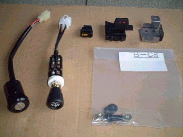 ![]() ↑左からイグニッションスイッチ、ワイパースイッチ、 スタータースイッチ、ハザードスイッチ、ハザードスイッチカバー |