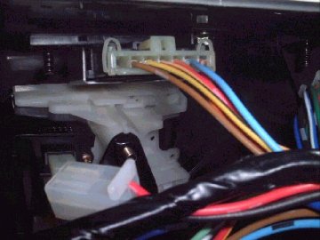 ![]() ↑ハザードスイッチに接続したカプラー。 下に見えるカプラーはたぶんイグニッションスイッチに接続 |