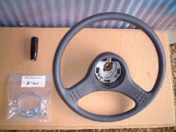 ![]() ↑シフトノブ(左上)とステアリング。 袋の中には透明チューブ(380o)が 入っているが、使わない部品も。 あとで使うのだろうか? |