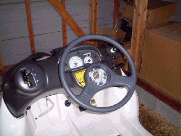 ![]() ↑シフトノブ(左)、ステアリングをつけてまたまたクルマらしくなった |