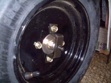 ![]() ↑タイヤにホイールキャップステーを取り付けたところ |