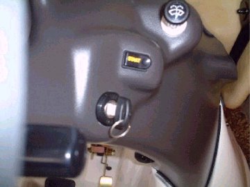 ![]() ↑イグニッションスイッチにキー差して、エンジン始動準備はOK |