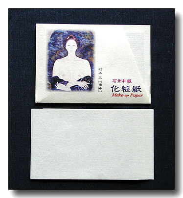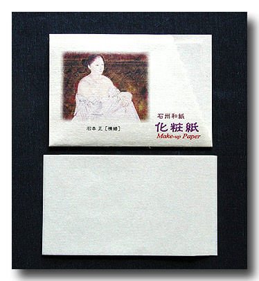 この和紙はトルマリンと備長炭と絹雲母を配合して特別に漉きました。この和は皮膚に微弱電流を与えることとお顔の余分な汗や脂分をおさえることで美容と健康に良い効果があります。