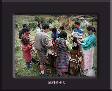 セレモニーとガイダンス後、ツァショーの竹簀づくりを行うためにデモンストレー |