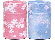 和風柄のかわいいお茶缶。淡いピンクとブルーの2色を揃えました。 各 \420