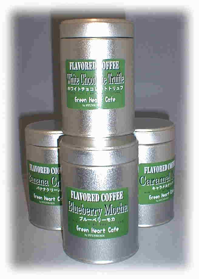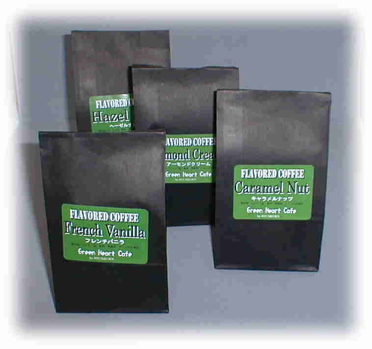 | バニラやナッツ・フルーツなどの香りを加え深く焙煎した、シアトル直輸入のフレーバーコーヒーです。 8種類のラインナップで発売中です。 |