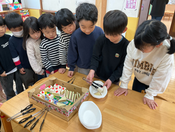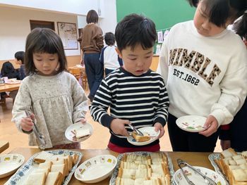 | 取り分けの練習 | みんなの前で焼きます |