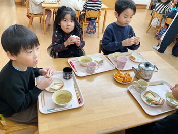 ※3才未満児さんは9時のおやつ(お菓子+牛乳かヨーグルトかお茶)もあります。