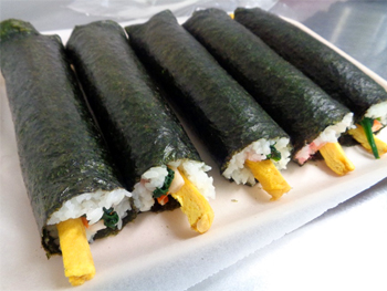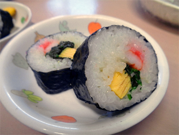 三時のおやつに巻きずしを食べました。 |