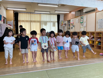 ロコモコ丼 お好みいももち ほうれん草のごま和え オニオンスープ 季節の果物