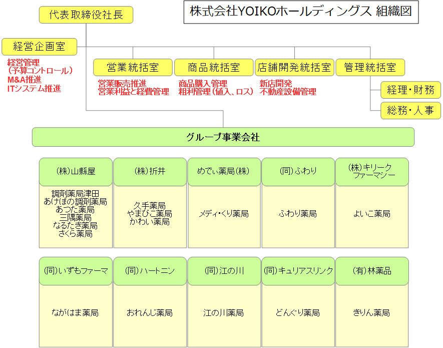 | 従業員数 | 薬剤師24名 スタッフ41名男性21名 女性44名(グループ全体) |