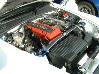 モンキチクンのS2000。初めてまじまじ見学させてもらいましたがさすが世界のホンダ。車の作り方がちがう!エンジンはストラットより完全に後ろ側、バッテリーもエンジンルーム後端。重たい物は車の中へ中へと見ればみるほど良く考えて作ってあります。