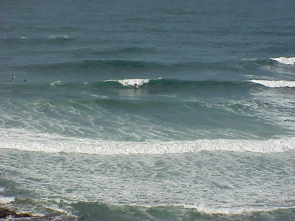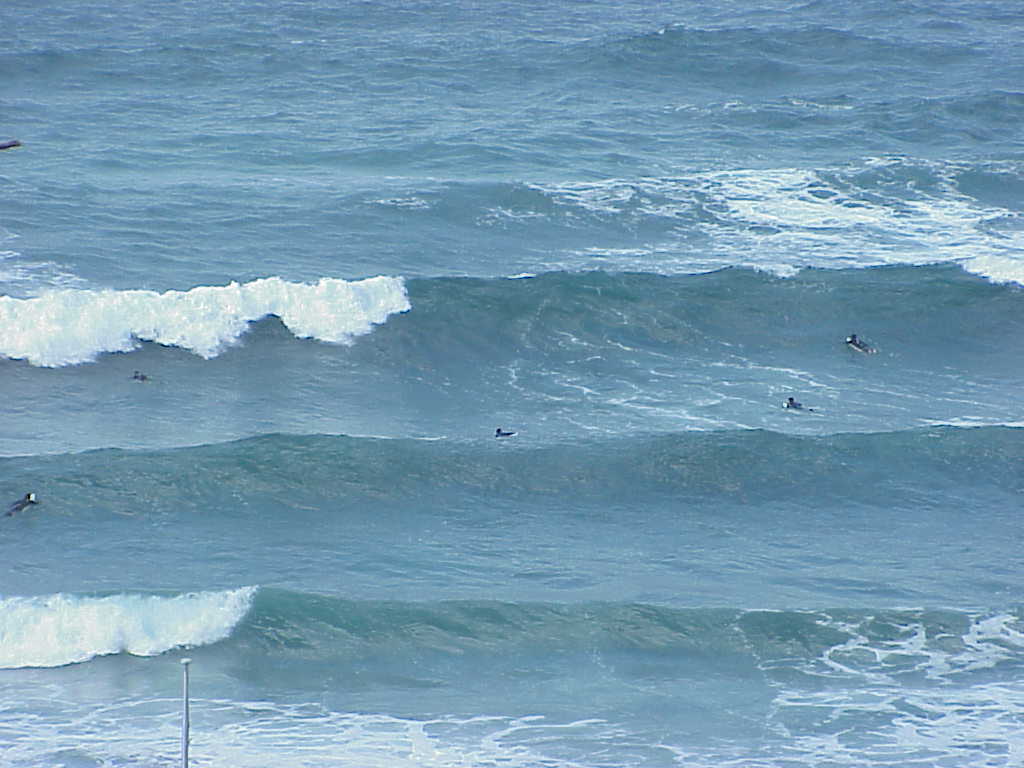 サイズはどのくらいになるのだろうか。頭以上はあったと思う。 普段アウトに出る突堤沿いのコースだとセットの間をねらってすばやく出ないと押し戻される。 最後は隣の入り江からアウトに出た。