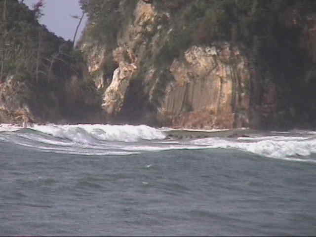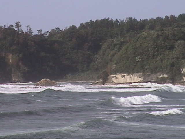 昼前にカマノ行ってみたら南西のボヨボヨ波。fのs君が海上から両手でペケの合図。しばらくカマノ入っ てよくなかったので福光見に行って、やはりカマノに帰った。みんな昼食で1,2人くらいしか入っていない。 再度入ってしばらくしてから、やっと本気の南西うねり入りはじめた。3時にクローズするまでのほぼ2時間、 スリリングな南西パワーライディング。 下の画像は上がってからのもの。カマノにはもう誰も入っていない。南西に向いたツゴウの浜は洗濯機の中 のように潮が回っていた。 |
