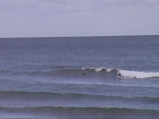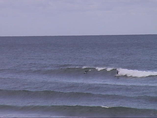 北うねりの大きい日。この日は土曜日だったか。少し西に傾いた北北西くらいのうねりで、大島よりのかな りアウトから、たまに割れてくるやつに乗るとインサイドまで十分に乗り継げた。