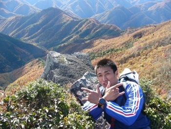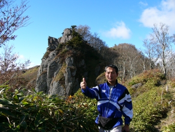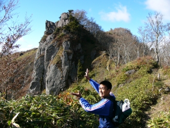 大神ケ嶽から縦走で赤谷山へは登りますが、その前に道路から記念撮影です。