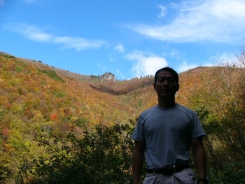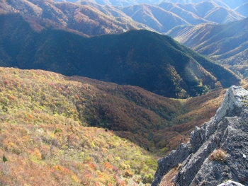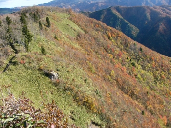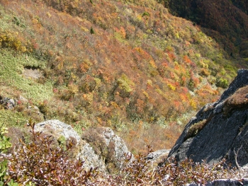 山全体が紅葉していますが、山頂の方は、もう落葉しているようです。