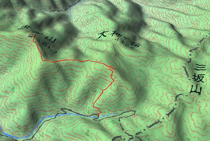 今回の大神ケ嶽、赤谷山登山のGPSでのルートを載せておきます。